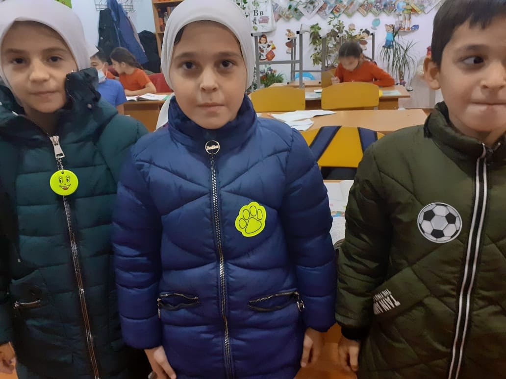 Обучающиеся 3 а кл под руководством классного руководителя Умхановой З.А. наклеили на портфели и верхнюю одежду световозвращающие фликеры для того, чтобы водитель мог их заметить на дороге в тёмное время суток