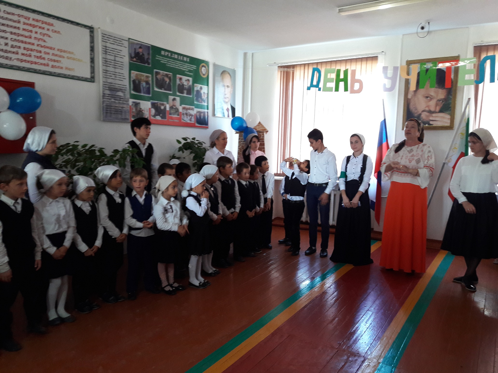В МБОУ "Харьковская СОШ" прошла линейка, посвященная празднованию Дня учителя.