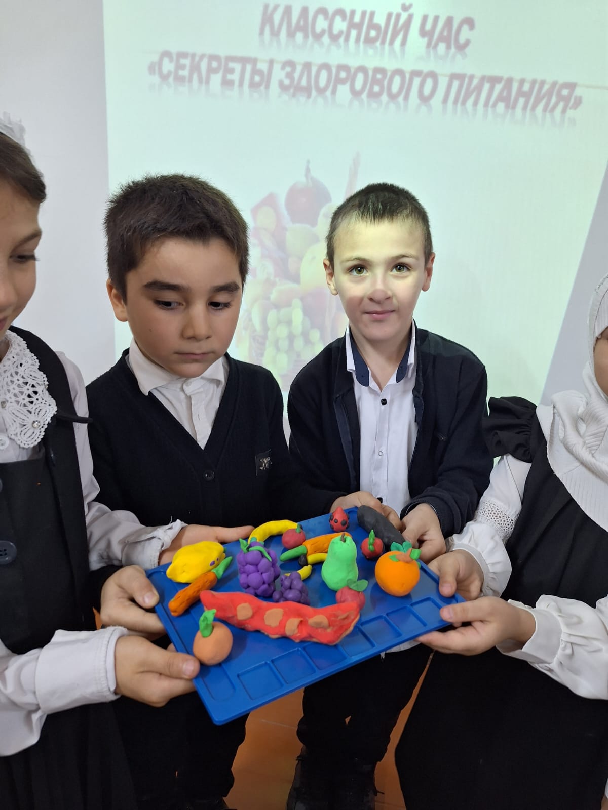 В МБОУ "Харьковская СОШ" в рамках " Недели здорового питания" Умхановой З.А. был проведен классный час на тему "Секреты здорового питания".