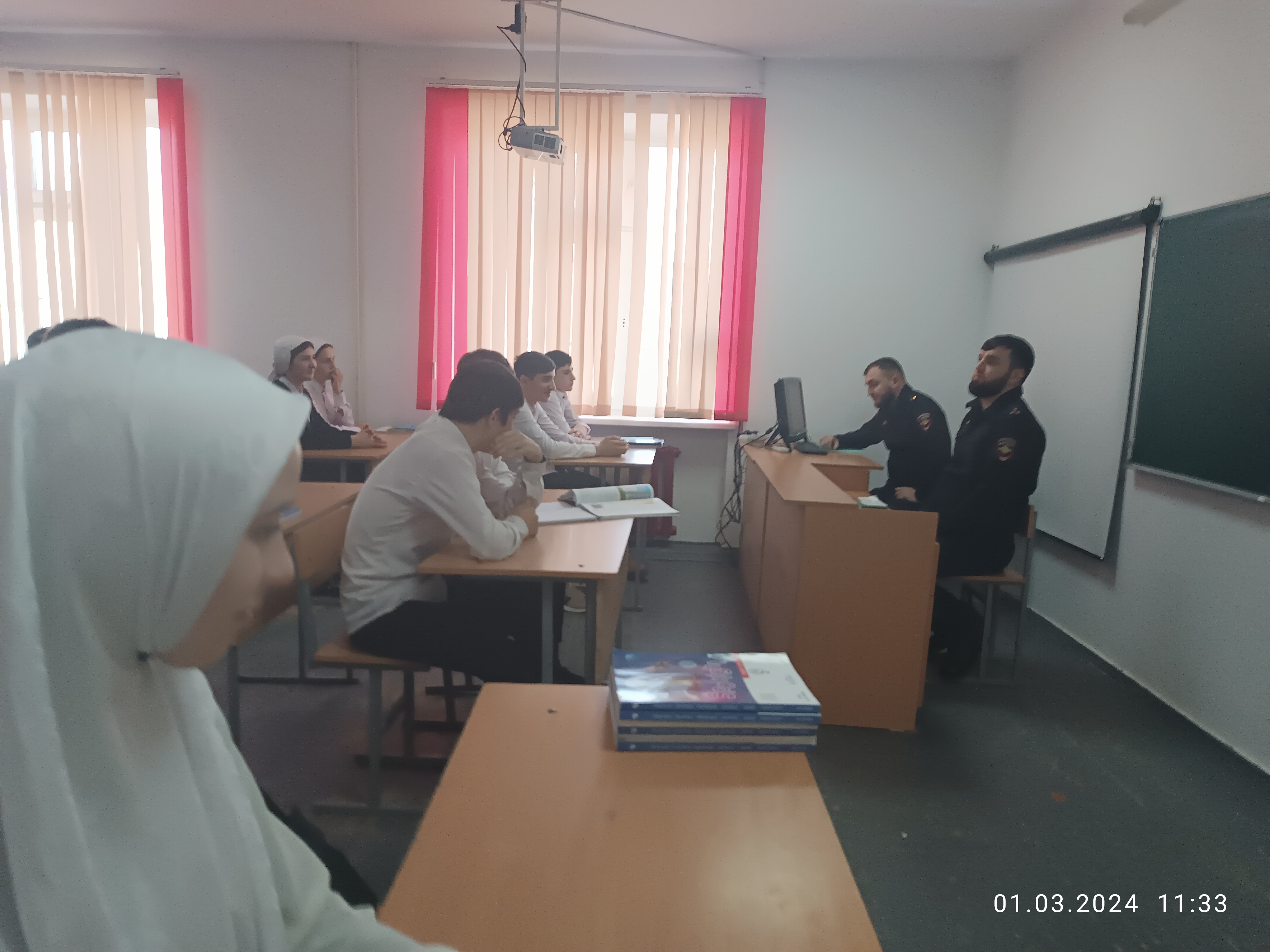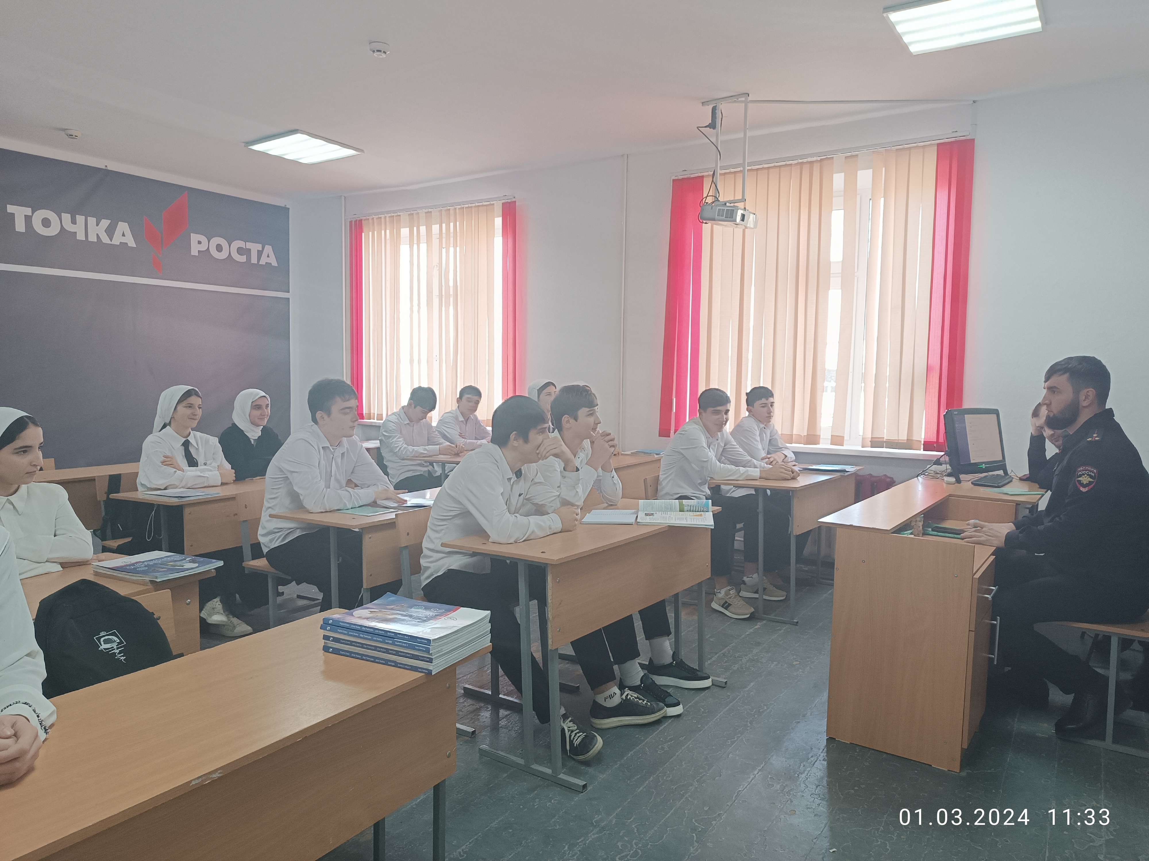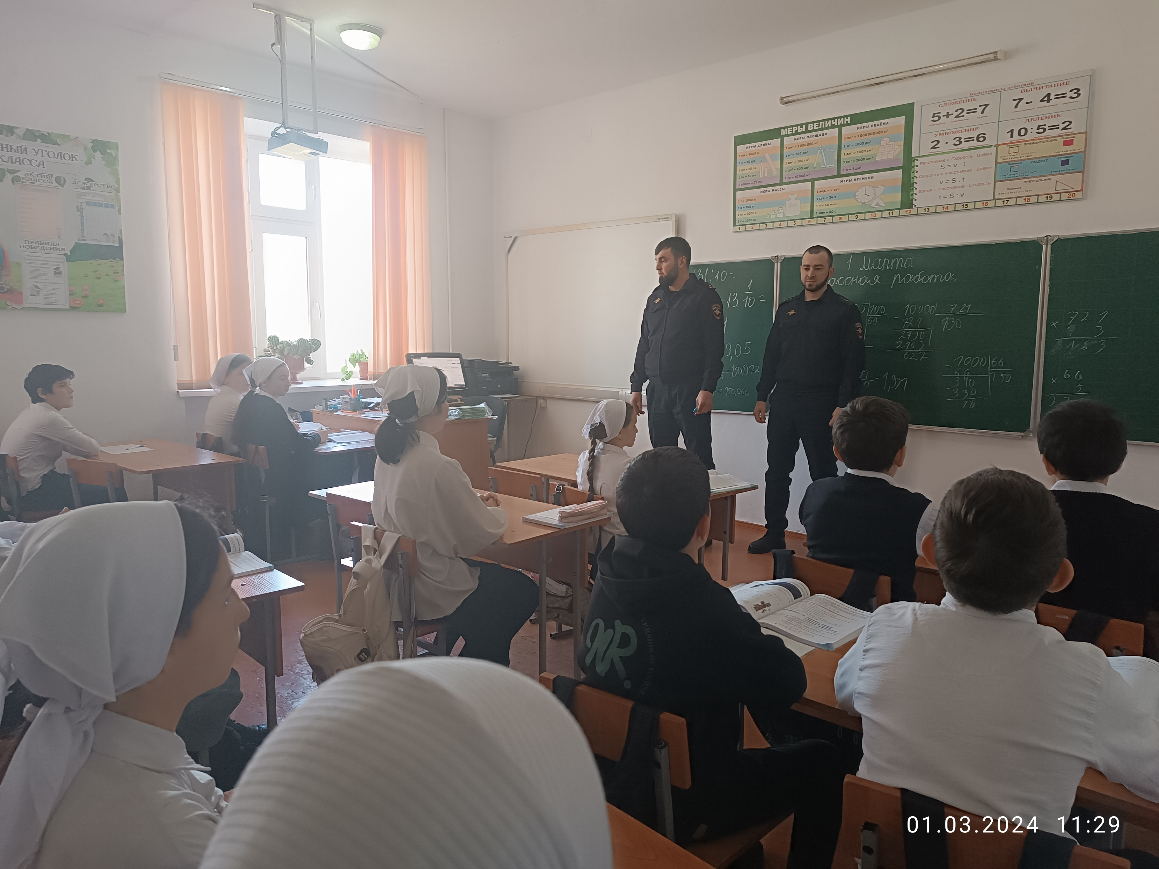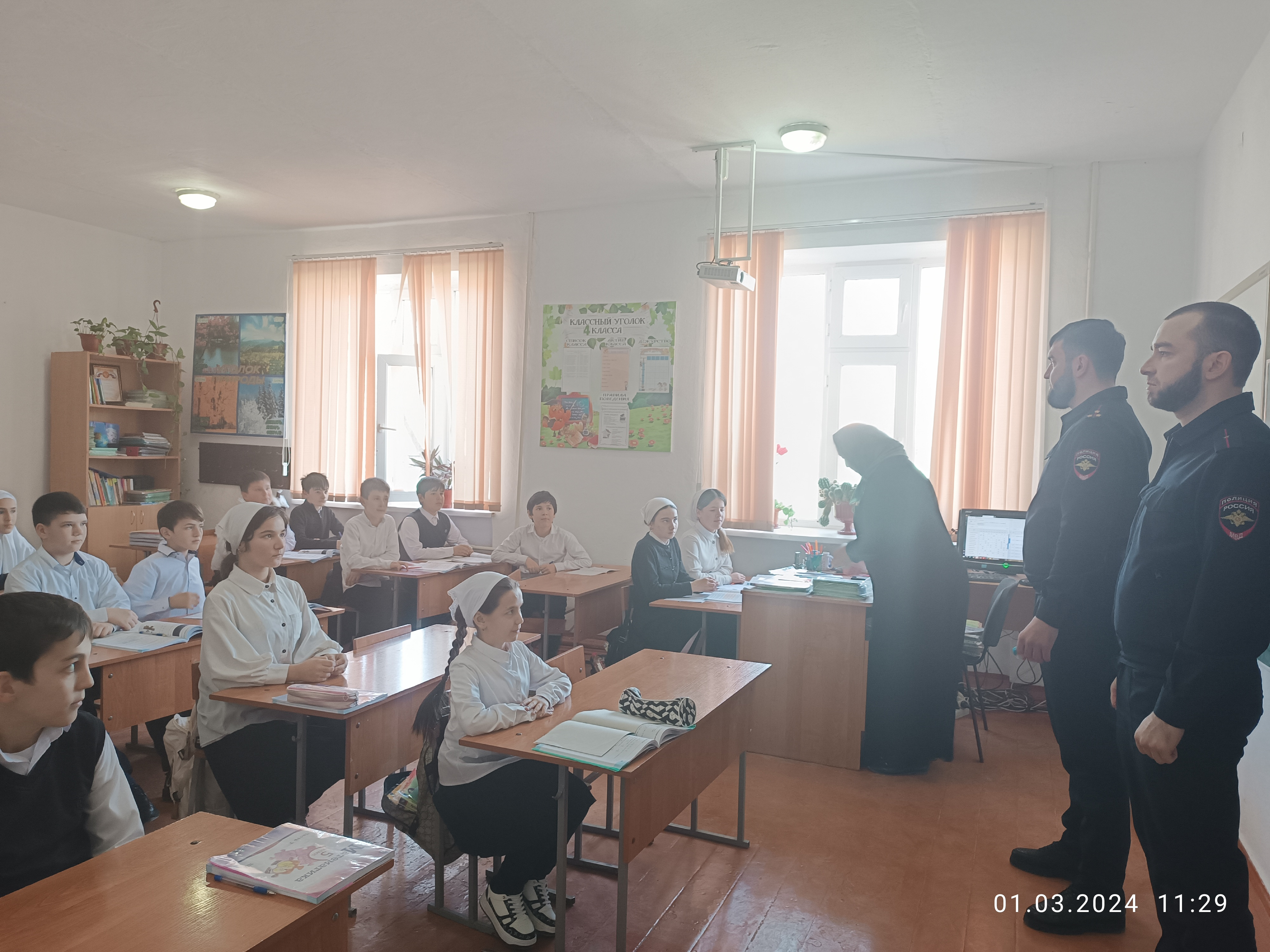 Абдулаевым Ж. А.- младшим лейтенантом проведены беседы с несовершеннолетними обучающимися с 5-9 классов на темы: " Несовершеннолетний и закон", экстремизм и её проявление в мессенджерах,соц.сетях", "Выборы-2024" , направленные на предупреждение и пресечение распространения среди обучающихся экстремистских и иных радикальных взглядов, вовлечения их в деструктивную деятельность.
