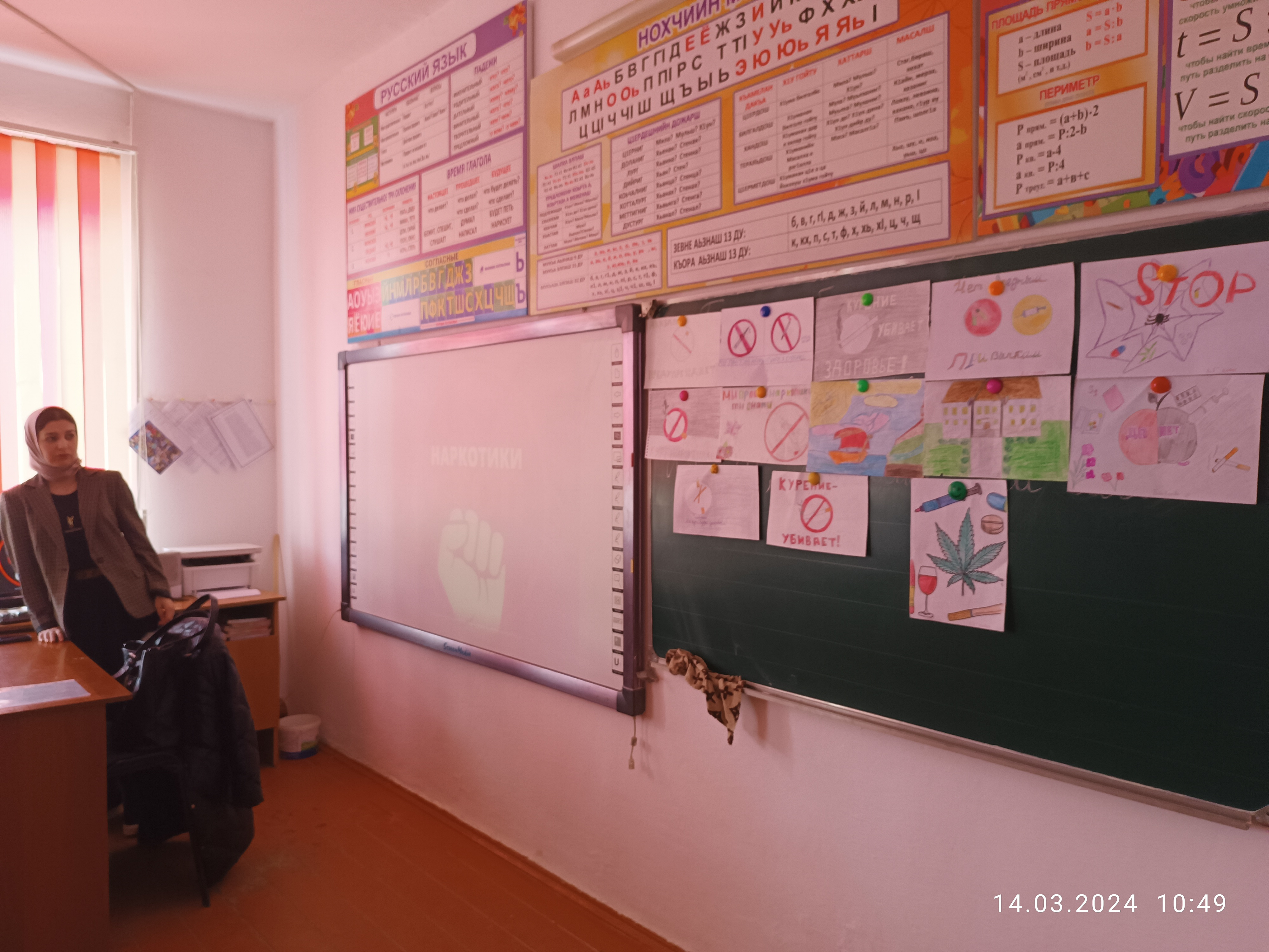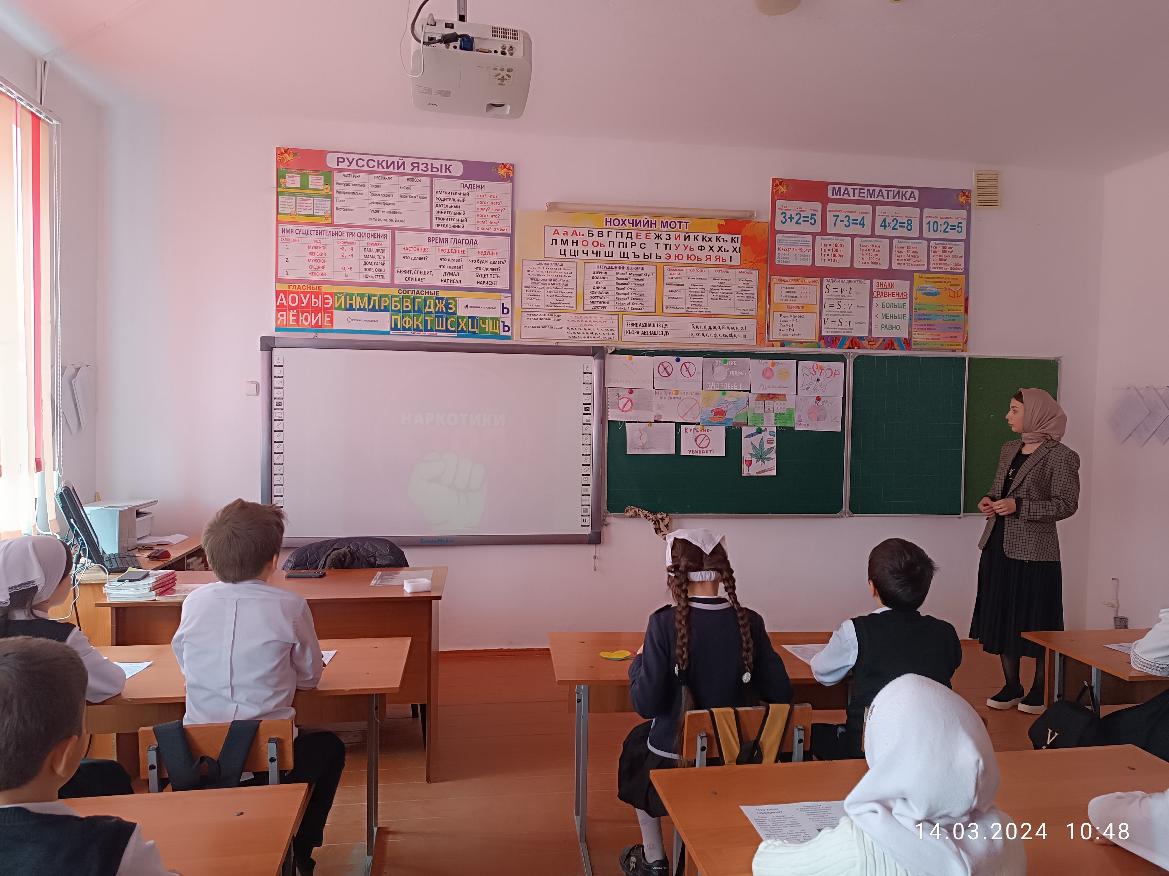 В МБОУ "Харьковская СОШ" социальным педагогом Турлаевой М.У. в 4а классе совместно с учителем начальных классов Хатаевой Ф. Х. была проведена беседа на тему "Здоровый образ жизни" с целью расширить представление детей о здоровом образе жизни, способствовать формированию положительного отношения к здоровью как величайшей ценности,побуждать детей к соблюдению навыков ЗОЖ.