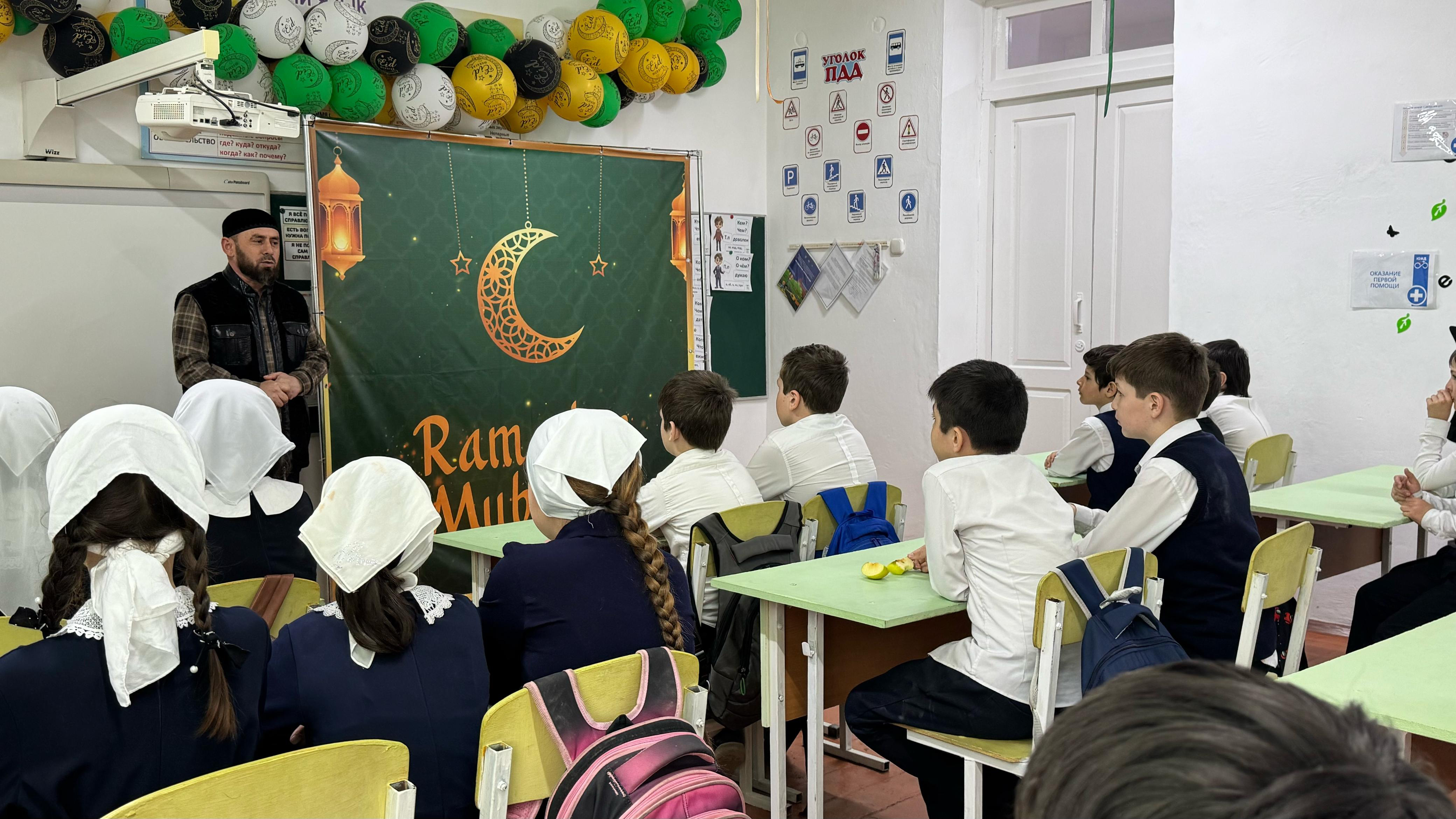 для всех обучающихся урок нравственности, целью которого было ознакомление с важнейшими ценностями этого месяца — воспитание терпения, примирение, мудрости и доброты, милосердия. Он рассказал, как надо держать пост, чтобы он был принят, что нарушает его. Большое внимание он уделил теме этики — об отношении к старшим, родителям, учителям, о важности стремления к знаниям.