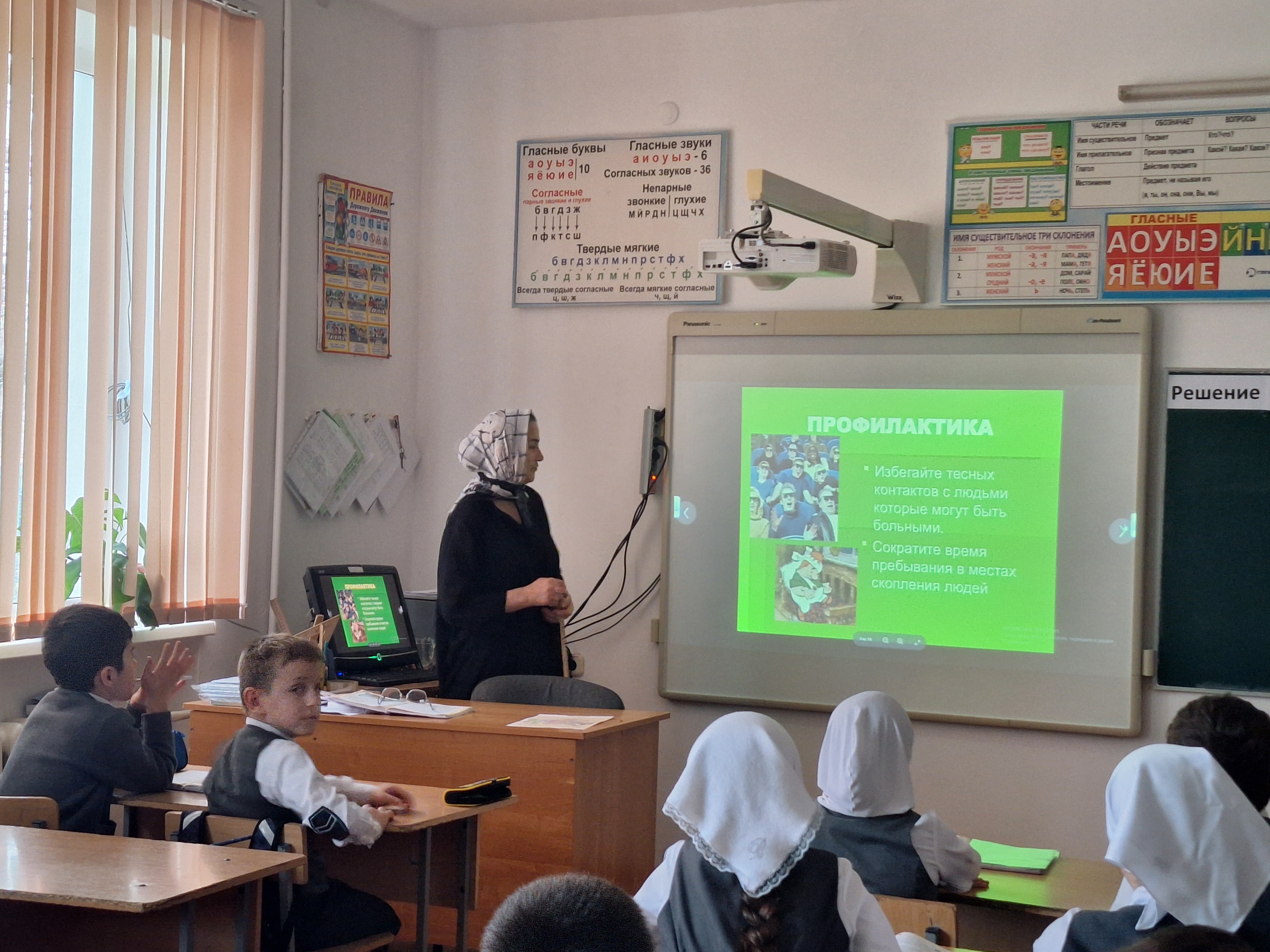 В МБОУ «Харьковская СОШ» прошли беседы о профилактике гриппа совместно с классными руководителями и медицинским работником школы Шахбулатовым И.С.