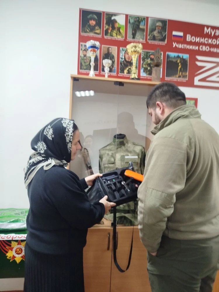Музей Воинской Славы "Участники СВО-наши выпускники", пополнился новым экспонатом с передовой зоны специальной военной операции. Участник СВО,Автарханов А.А. передал в музей школе беспилотный летательный аппарат, Fly faith 2.